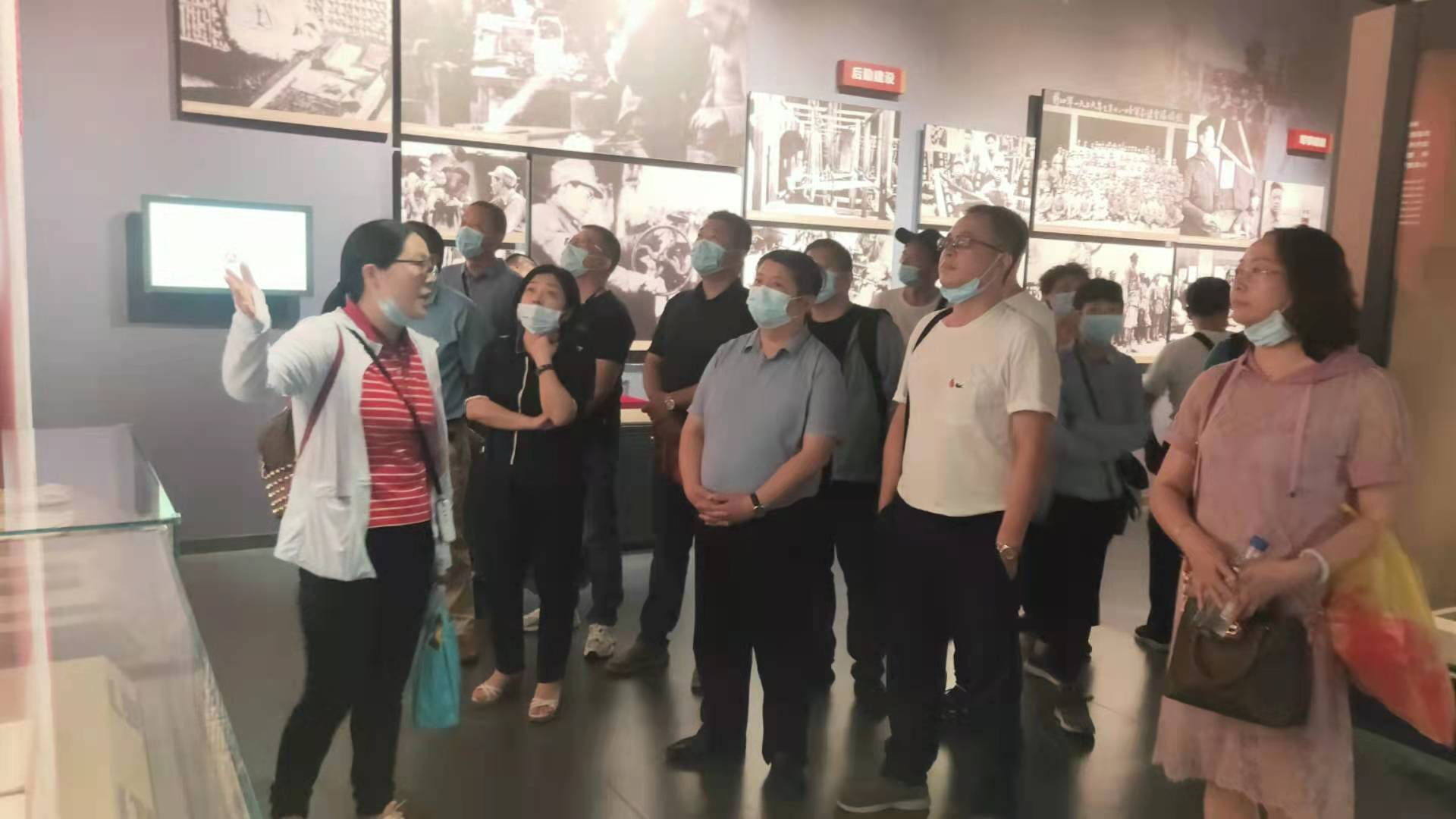 各位党员在新四军纪念馆珍藏的图片、文物前驻足观看,追忆革命年代的烽火岁月,领悟先烈的革命精神。